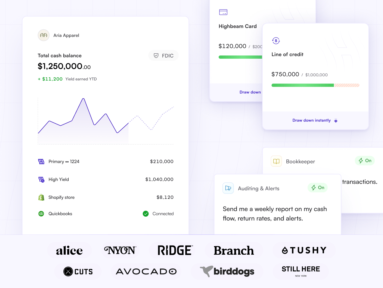 Highbeam is banking built for D2C brands. Real-time cash visibility, better yield on idle cash, and automated back-office finance.