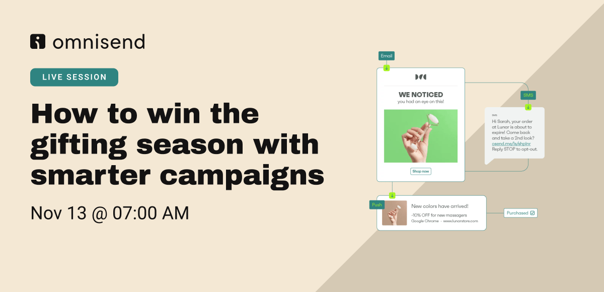Join Omnisend’s live session “Don’t stop at BFCM: How to win the gifting season with smarter campaigns” and learn how to keep your sales flowing well past Black Friday.