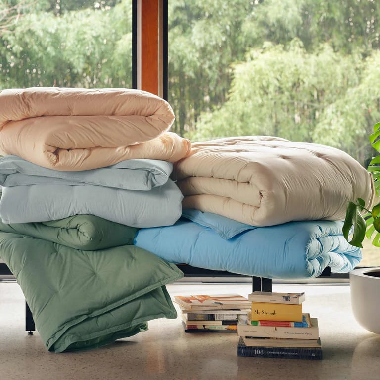 A machine-washable, no-duvet comforter designed to be fluffed once and forgotten; leaning into the growing demand for low-effort, high-comfort bedding.