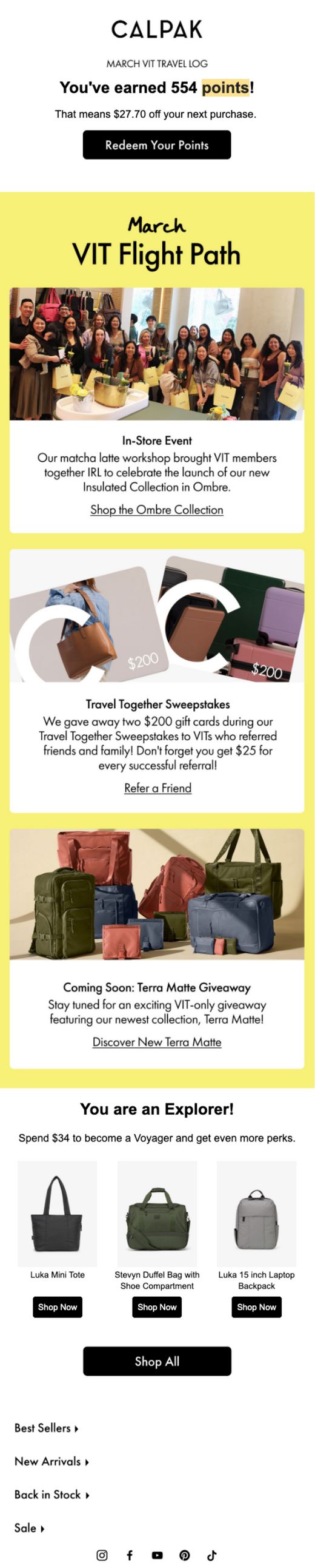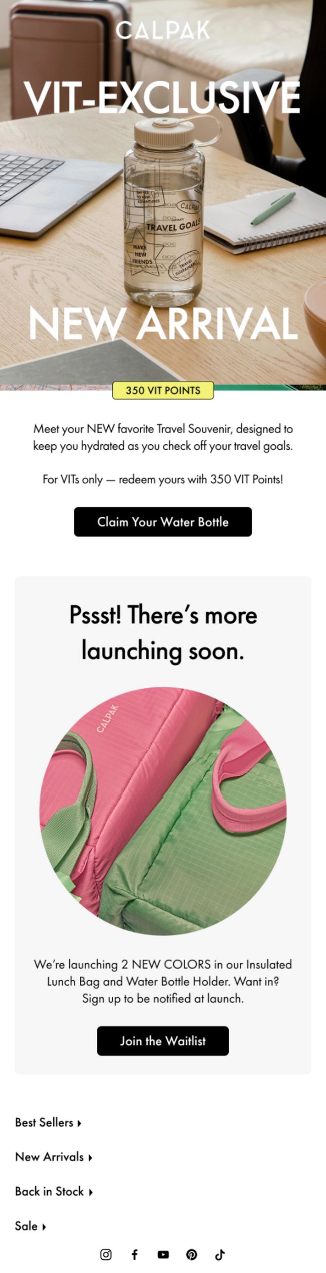 CALPAK’s VIT series blends exclusivity, rewards, and soft-sell storytelling in a way that feels natural and elevated. It’s not just a loyalty program—it’s a lifestyle loop. With a few improvements in personalization, content diversity, and clearer redemption paths, this retention engine could be even stronger.