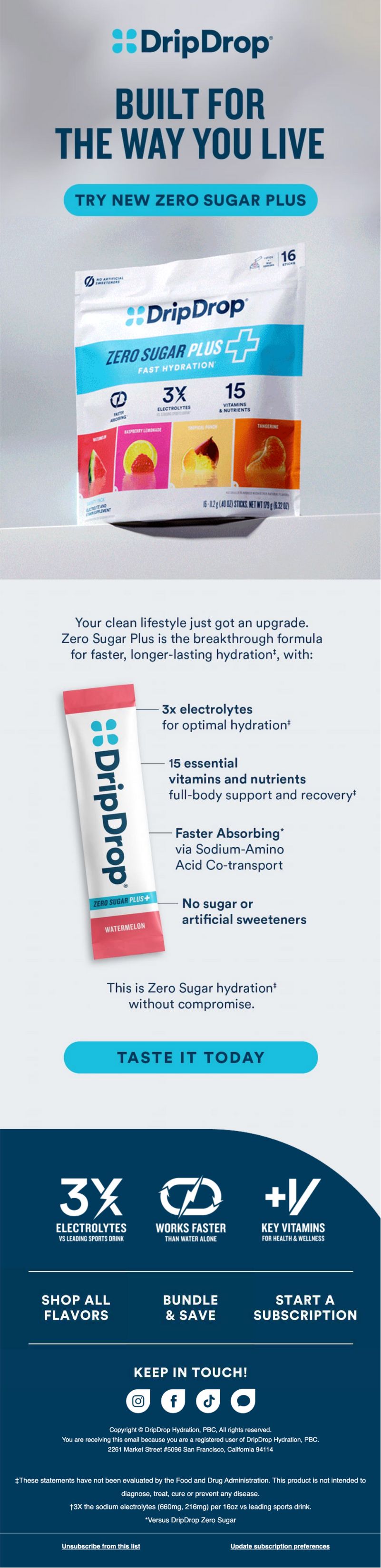 DripDrop did not overthink this launch. They focused on one thing and repeated it until it stuck. Faster hydration, zero sugar, and a formula built for real life.