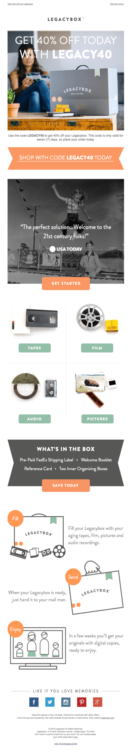 Subject line: Take 40% off your Legacybox