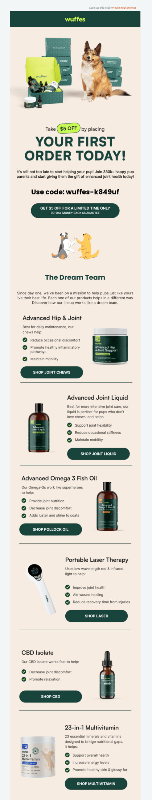 Subject line: Take $5 off your first Wuffes order!