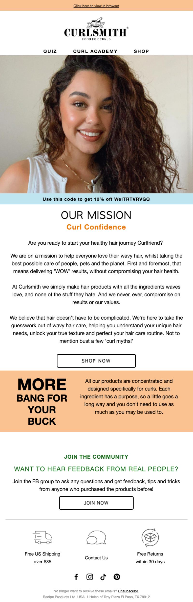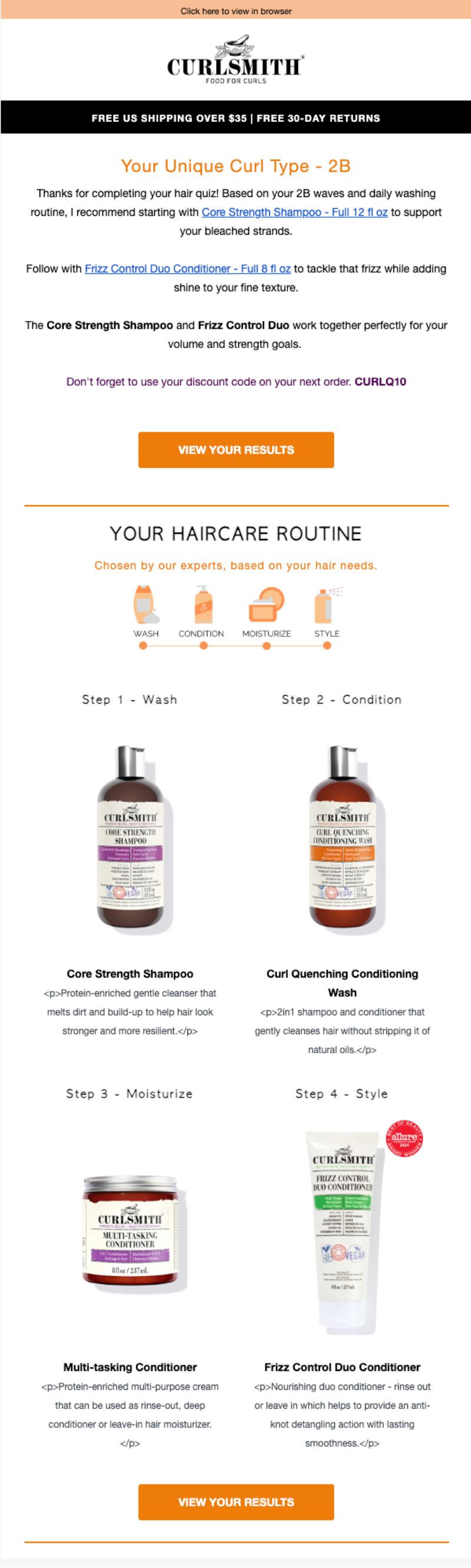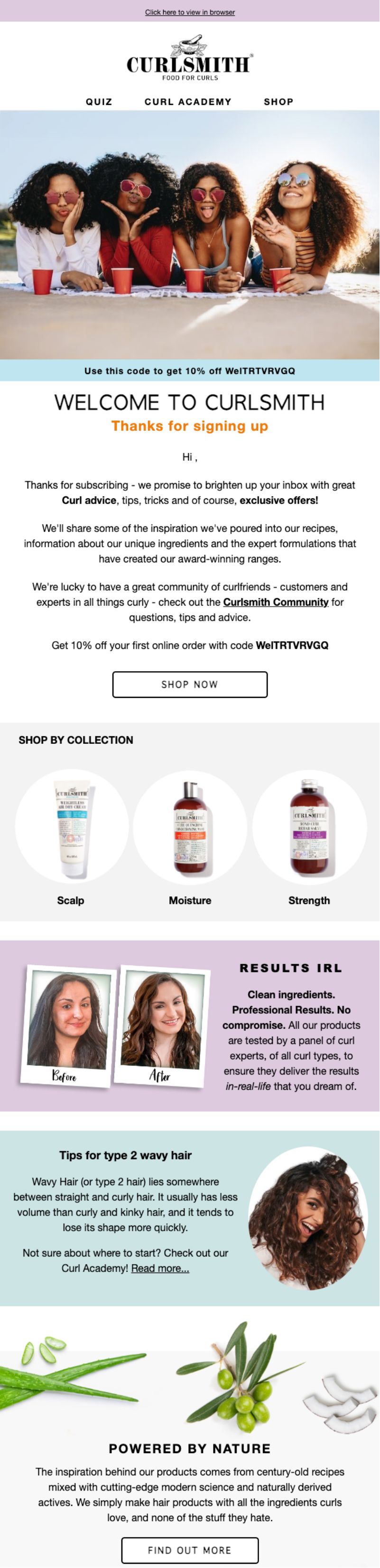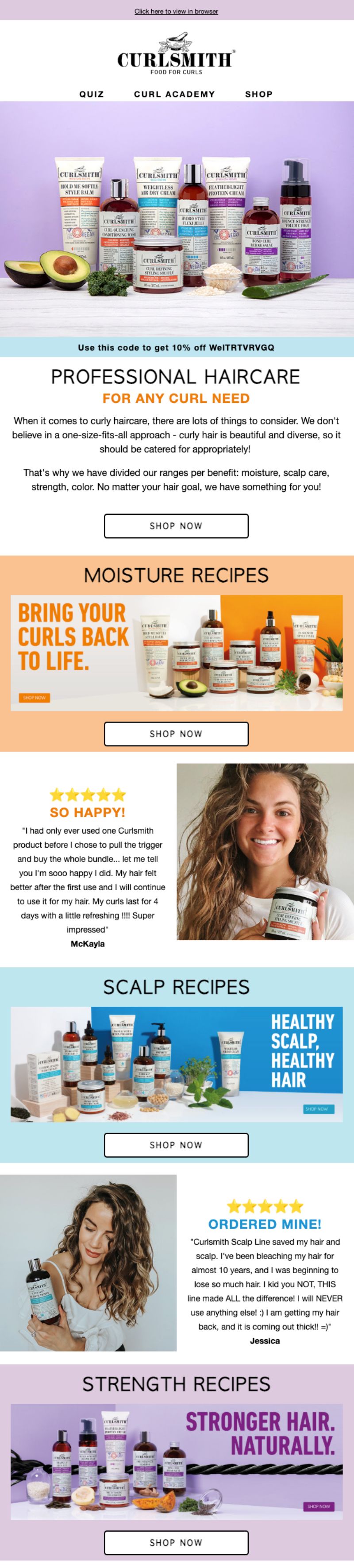 Curlsmith is all about Food for Curls but their welcome funnel? It’s serving up way more than product shots.