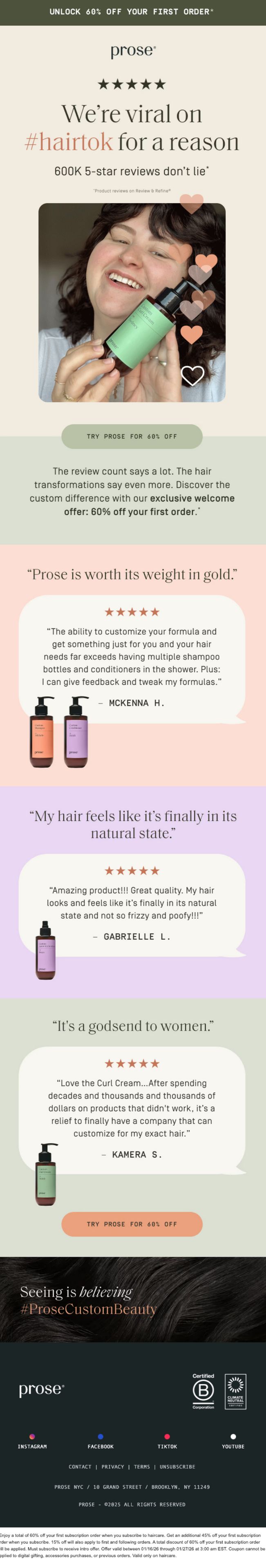 The email relies heavily on testimonials. One quick “why this works for your hair” reminder could keep personalization front and center