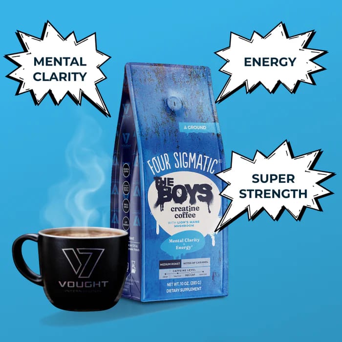 Four Sigmatic teamed up with Prime's The Boys Season 5 for a creatine coffee blend made with Arabica coffee, creatine, lion's mane mushroom, and caffeine extract for clean energy and focus.