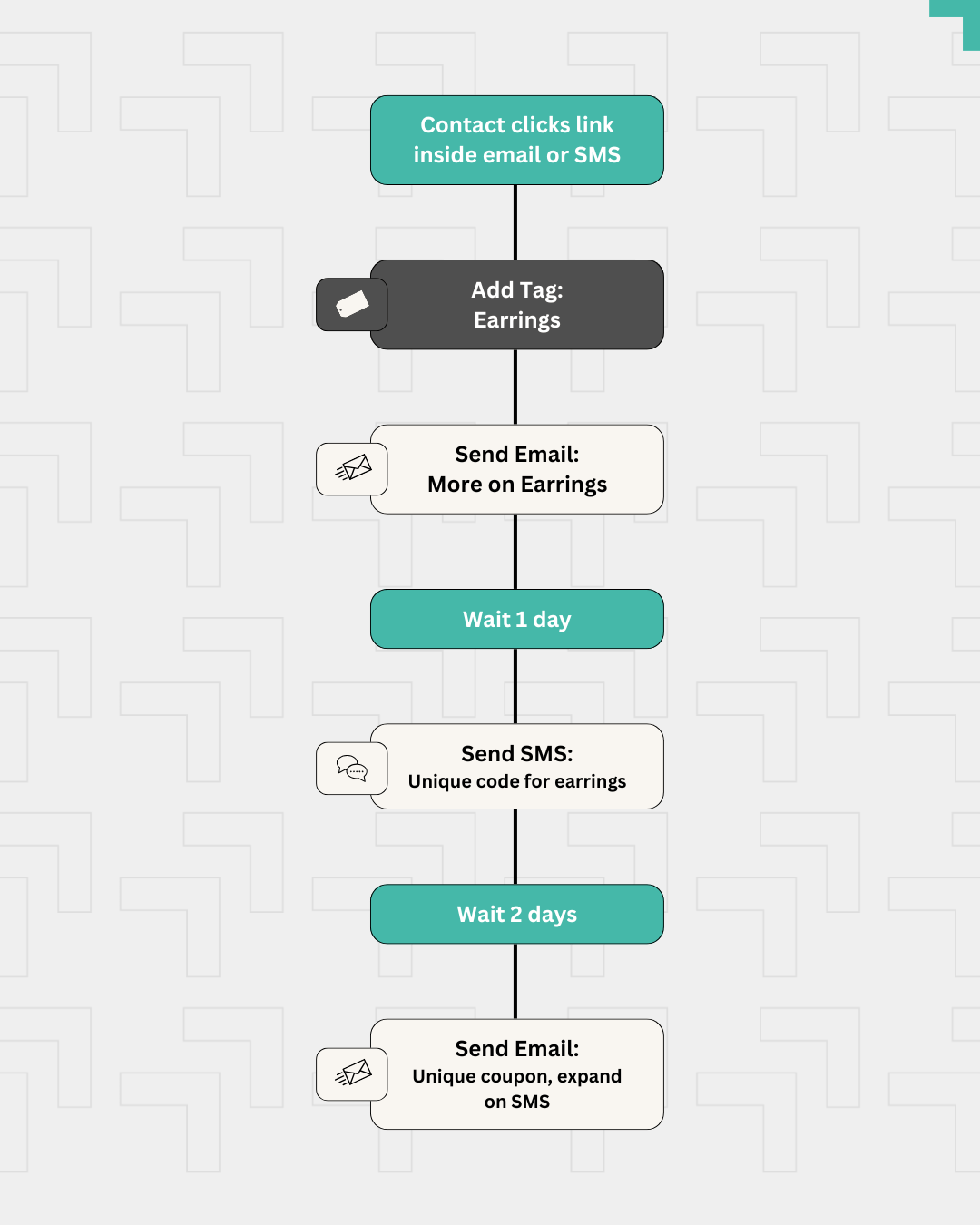 When a subscriber clicks on a link to explore earrings in your jewelry store, you add a tag to their profile (e.g. “earrings”).
