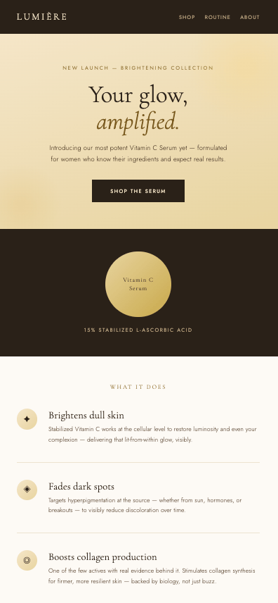 Try this: "You're a skincare specialist writing to women aged 25-45 who take skincare seriously. Write an email introducing our vitamin C serum. Focus on its ability to brighten dull skin, reduce dark spots, and boost collagen production. Keep the tone warm, professional, and expert-driven, but not clinical."