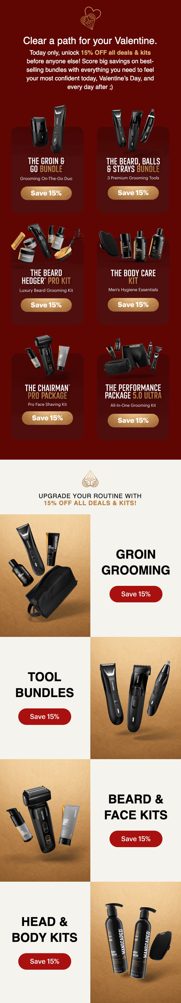 That's exactly what Manscaped nailed with their Valentine's early access email. Simple bundles, a clean discount, and a design built for people who are ready to click "buy."