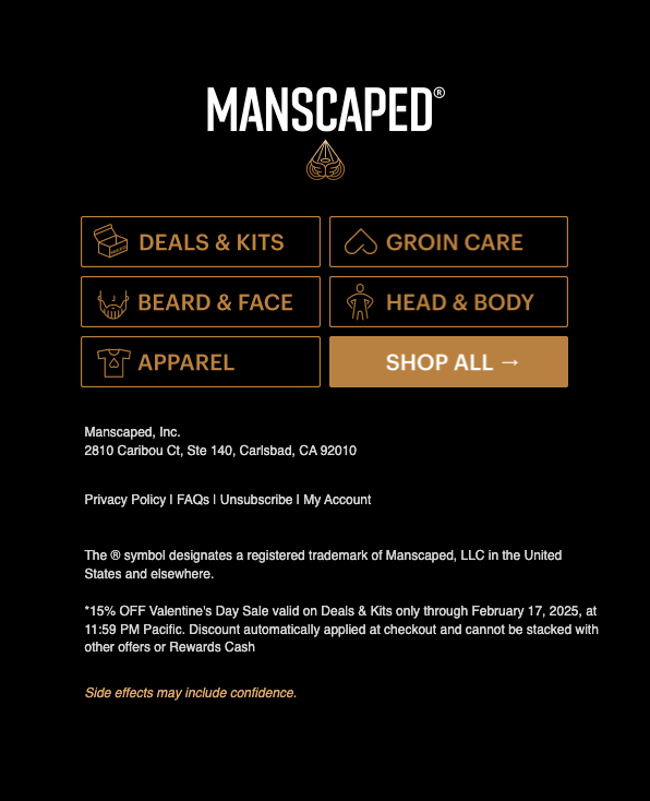 Manscaped has never been a subtle brand. Their emails are confident, direct, and built to get to the point fast.