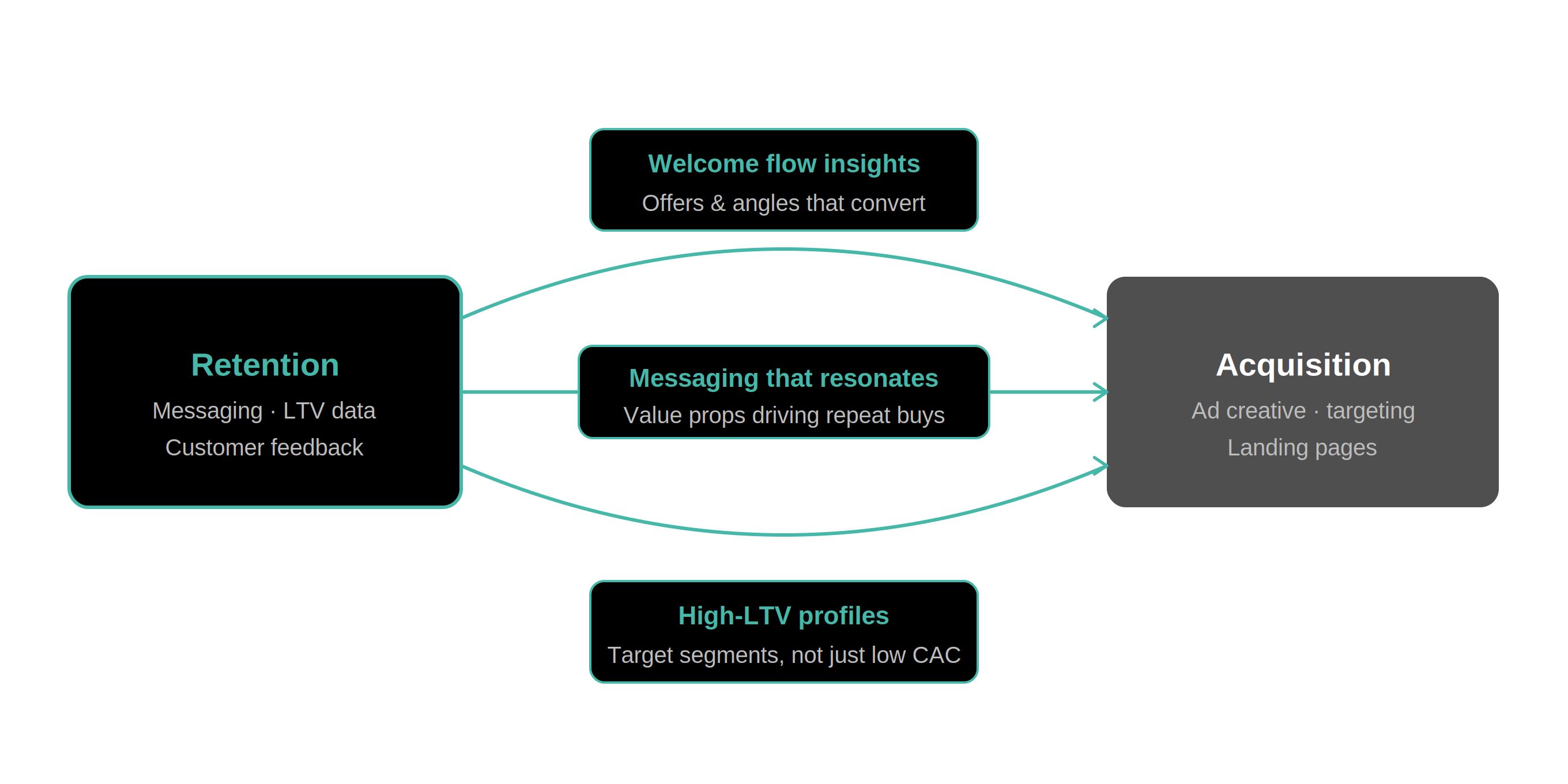 Retention teams often operate in a silo. Break that down. Share what's working, what's not, and what you're learning about customer behavior. Acquisition will perform better when they understand what actually drives long-term value.