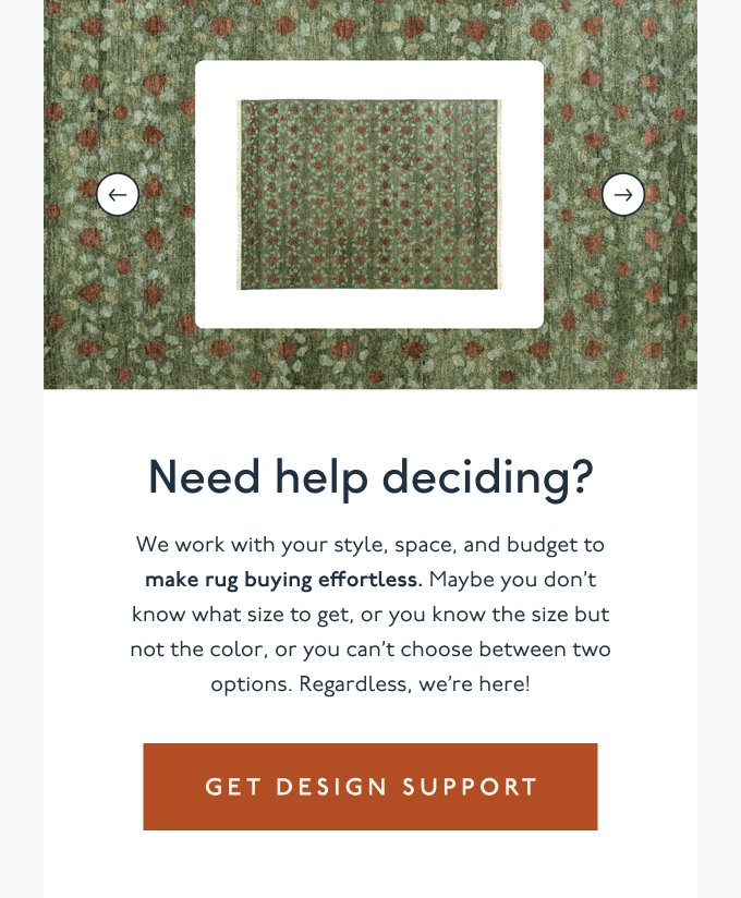 ✔ There’s more to browse. The image slider lets people explore other rugs without leaving the email. It helps keep them engaged if the original pick wasn’t the one.