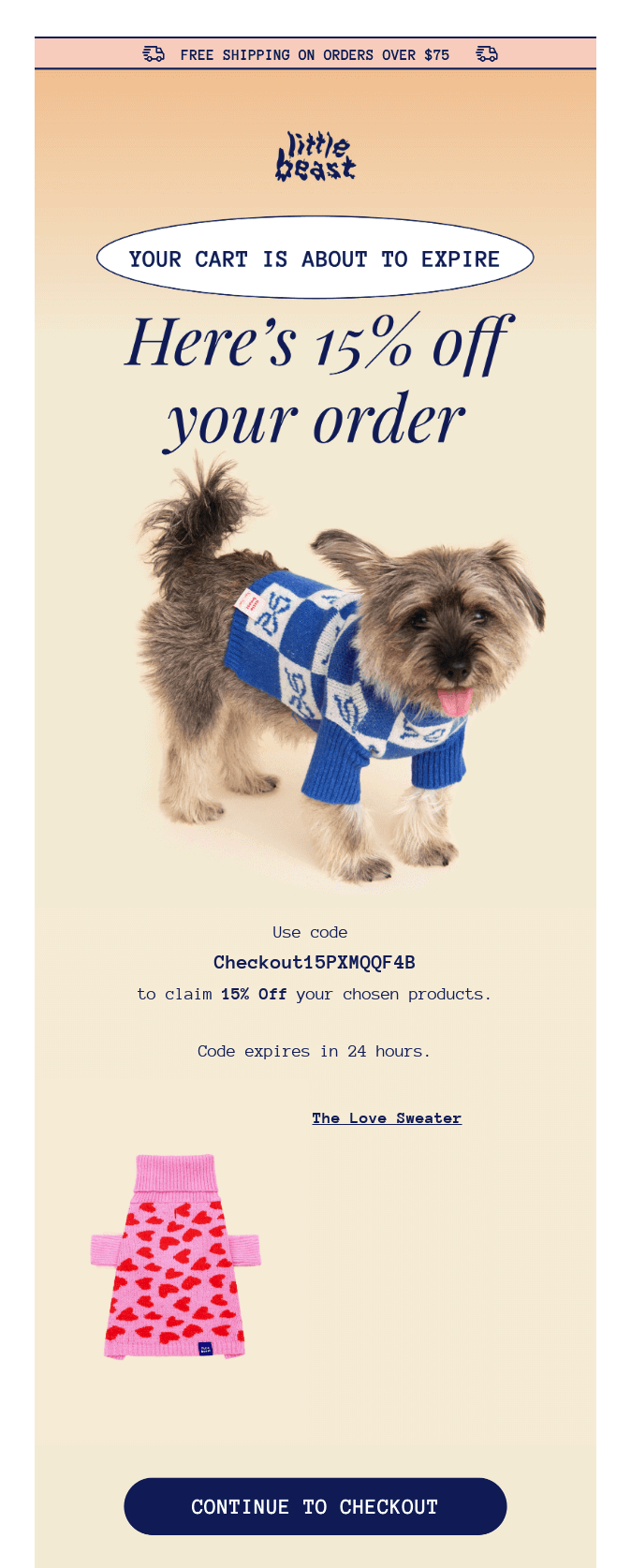 Use scarcity or urgency. This is a psychological tactic to encourage purchase by tapping into FOMO (e.g. “Your cart expires in 24 hours!”)