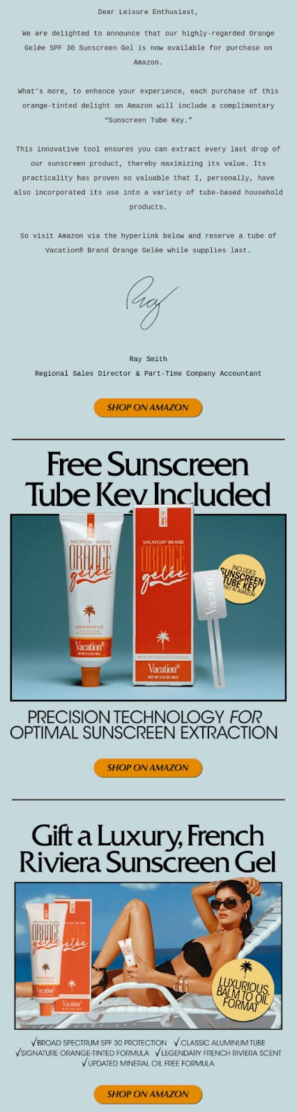✈️ Vacation’s Orange Gelée Amazon Announcement Email: Retro Vibes That Could Drive More Clicks