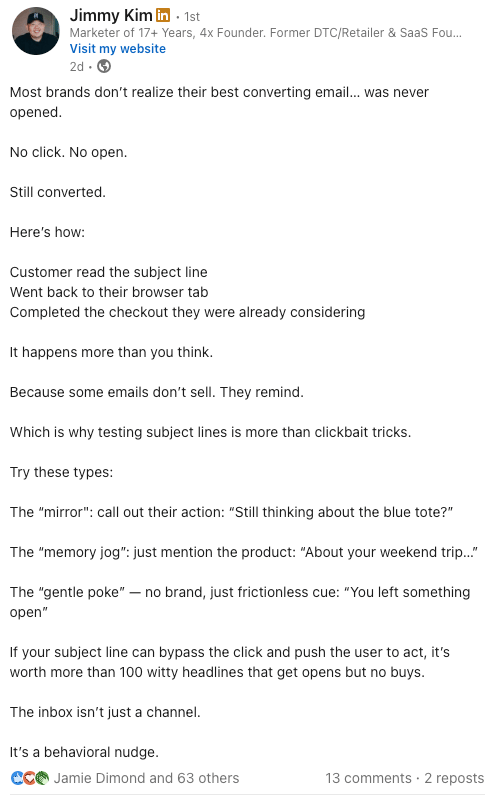 Most brands miss this sneaky inbox behavior... Jimmy breaks down why some of your highest-converting emails never get opened and how to write subject lines that still drive action.