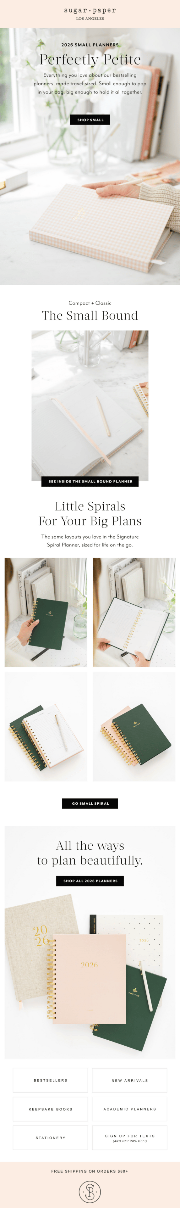 Sugar Paper’s planner launch email is a great example of minimal, lightweight design that stays visually elevated without compromising mobile readability.