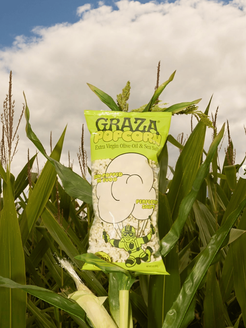 Graza's "pop-ular" launch 🍿 A limited-edition collab with BjornQorn, this light and airy popcorn is sun-popped in Graza’s “Sizzle” EVOO and finished with just the right touch of sea salt.
